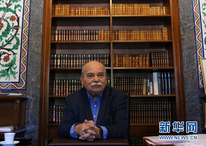 6月15日,在希臘雅典,希臘議長武齊斯在他的辦公室接受新華社記者采訪。希臘議長武齊斯日前在接受新華社記者采訪時表示,希望希中雙邊關(guān)系在更廣闊領(lǐng)域得到更快發(fā)展。 新華社發(fā)(馬里奧斯·羅洛斯攝)