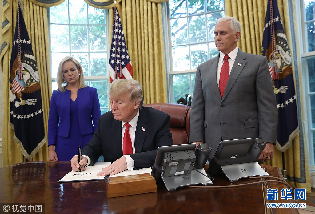 6月20日,美國(guó)華盛頓,美國(guó)總統(tǒng)特朗普撤回了此前為打擊非法移民,進(jìn)而導(dǎo)致大批兒童與父母強(qiáng)制分離的“零容忍”政策。(圖片來源:視覺中國(guó))