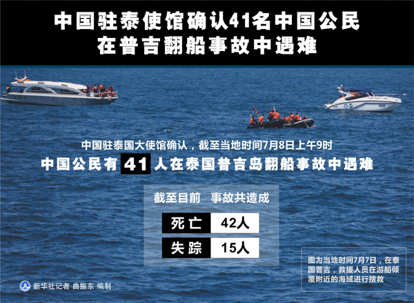 圖表:中國駐泰使館確認(rèn)41名中國公民在普吉翻船事故中遇難 新華社記者 曲振東 編制