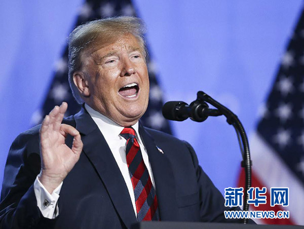 7月12日,在比利時(shí)布魯塞爾的北約總部,美國(guó)總統(tǒng)特朗普召開新聞發(fā)布會(huì)。新華社記者 葉平凡 攝