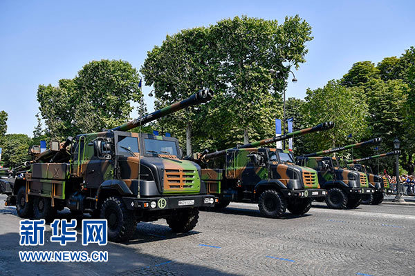 7月14日,在法國巴黎舉行的國慶閱兵儀式上,受閱部隊駛過香榭麗舍大街。新華社記者 陳益宸 攝