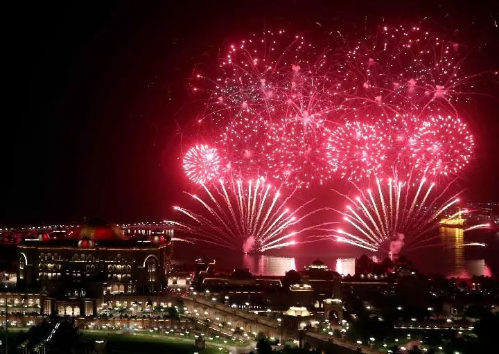 習(xí)近平主席抵達(dá)之日,歡迎焰火點亮阿布扎比夜空↓