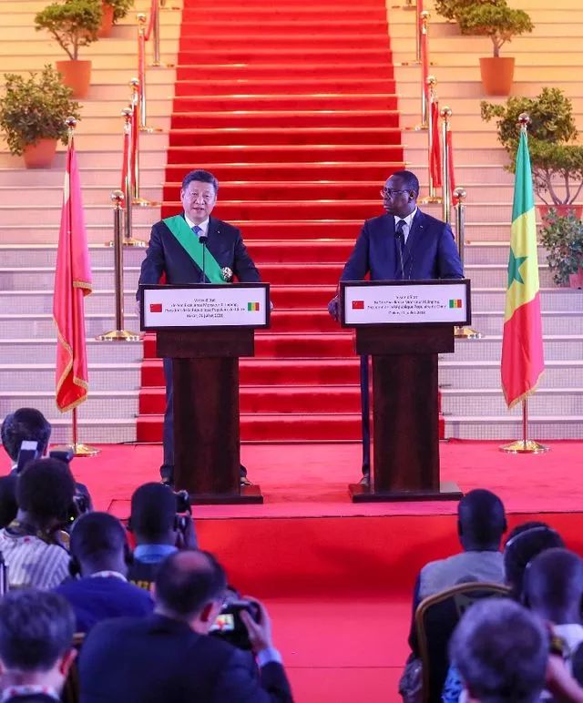 特殊禮遇,是盛情,更是敬重。兩位領導人會談后共見記者時,薩勒總統(tǒng)直抒胸臆:來我國進行訪問的是一位杰出領袖,習主席在發(fā)展領域有很多經(jīng)驗,中國在他的帶領下正大踏步前行,我想對習主席、對中國人民說,塞內(nèi)加爾人民尊重你們、敬重你們。