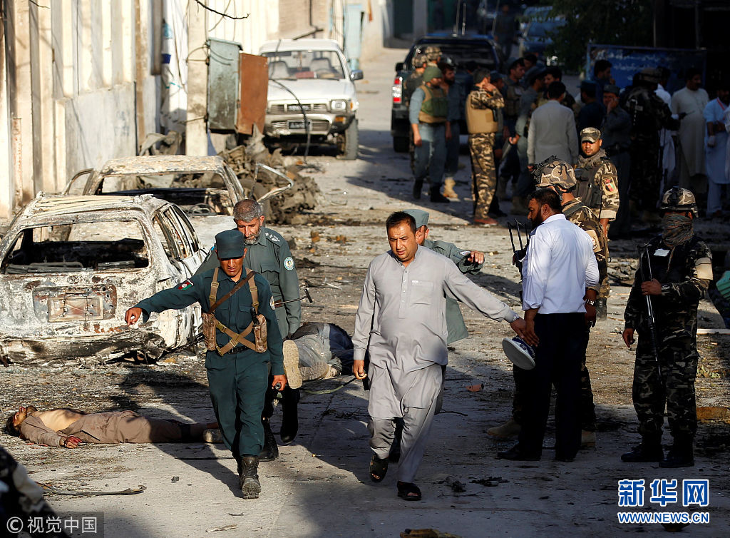 當(dāng)?shù)貢r間2018年7月31日,阿富汗賈拉拉巴德的一處政府辦公樓當(dāng)天發(fā)生襲擊事件,包括3名襲擊者在內(nèi)的至少18人死亡,另有15人受傷。(圖片來源:視覺中國)