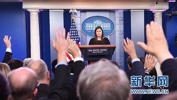 8月2日,在美國(guó)首都華盛頓,白宮發(fā)言人桑德斯出席記者會(huì)。新華社記者劉杰攝