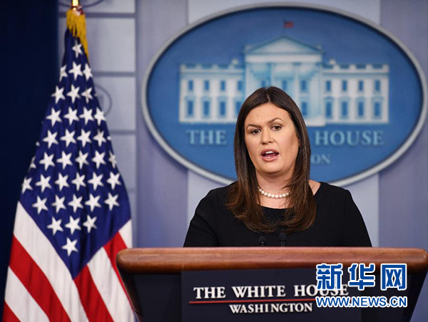 8月2日,在美國首都華盛頓,白宮發(fā)言人桑德斯出席記者會(huì)。新華社記者劉杰攝