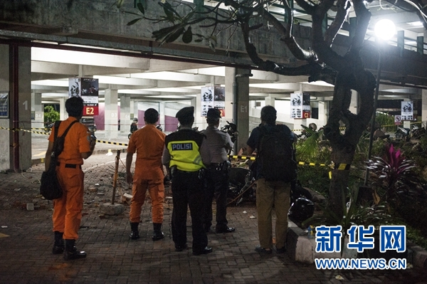 8月5日,在印度尼西亞西努沙登加拉省龍目島以西的巴厘島,幾名安保人員查看一處停車場里的落石。 新華社發(fā)(穆罕默德·福齊·哈尼亞戈攝)