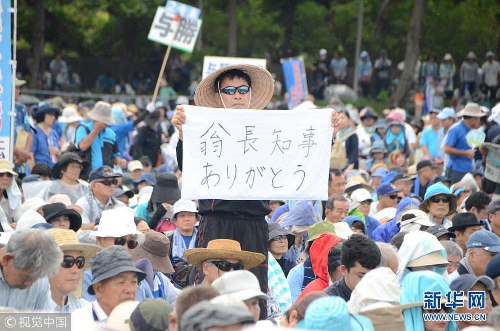 當(dāng)?shù)貢r(shí)間2018年8月11日,日本沖繩縣約7萬民眾8月11日在那霸市舉行大規(guī)模集會(huì),反對(duì)駐日美軍將普天間基地遷往名護(hù)市邊野古地區(qū),要求駐日美軍放棄在邊野古地區(qū)新建基地并立即關(guān)閉普天間機(jī)場(chǎng)。當(dāng)天,日本東京都、大阪府、福岡、北海道縣等地民眾也同時(shí)舉行集會(huì)和游行,抗議日本政府推進(jìn)邊野古地區(qū)填海施工。(圖片來源:視覺中國(guó))