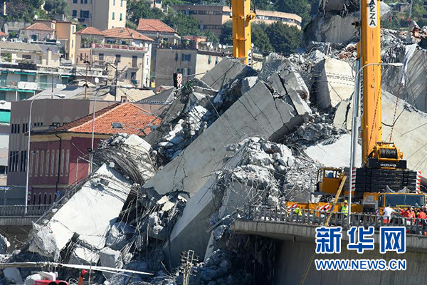 意大利北部熱那亞地區(qū)的莫蘭迪公路橋14日發(fā)生垮塌。該公路橋建于上世紀(jì)60年代,是連接A10公路與熱那亞城西部的一座主要公路橋,橋長1182米、寬18米,最高處離地面90米。橋面垮塌時(shí),路面有超過30輛機(jī)動(dòng)車在行駛。當(dāng)?shù)孛襟w援引民事保護(hù)部門和消防部門官員的話說,事故原因可能是橋體存在結(jié)構(gòu)問題。