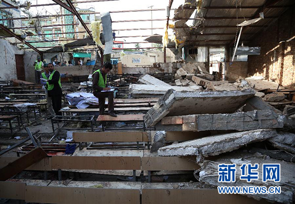 新華社報(bào)道員在現(xiàn)場看到,此次襲擊威力巨大,遇襲教室內(nèi)的天花板在爆炸中嚴(yán)重受損,從黑板、座椅到地面,到處都能看到尚未來得及清理的血跡,學(xué)員們的課本、文具等四處散落。教室外不時(shí)有家長趕來,急切打聽自家孩子的下落。