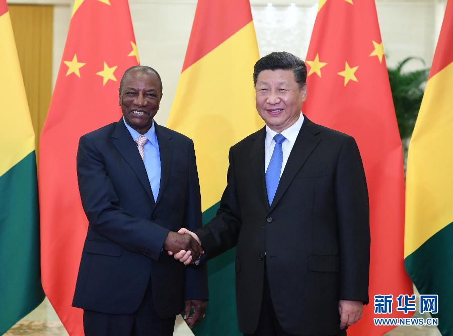9月1日,國家主席習(xí)近平在北京人民大會堂會見幾內(nèi)亞總統(tǒng)孔戴。新華社記者 張領(lǐng) 攝