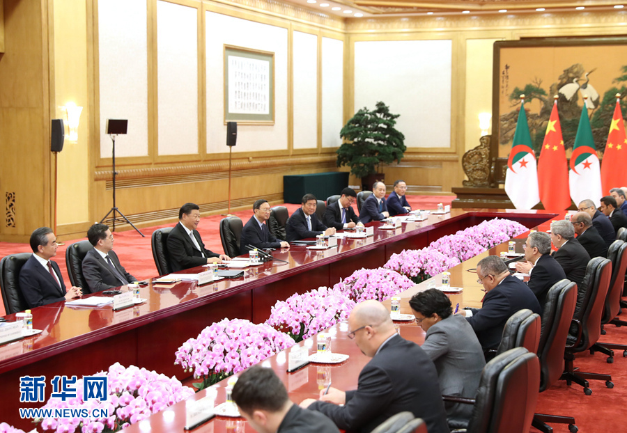 烏葉海亞表示,昨天,我向布特弗利卡總統(tǒng)報告了北京峰會的盛況。他讓我轉(zhuǎn)達對習近平主席的熱烈祝賀以及對中國支持非洲的衷心感謝。烏葉海亞表示,阿中關(guān)系歷史悠久。阿爾及利亞在爭取民族獨立和實現(xiàn)國家發(fā)展中得到中方寶貴支持,雙方在國際事務(wù)中一直緊密配合。阿方贊賞并支持北京峰會提出的中非合作新舉措,愿以此次雙方簽署“一帶一路”合作協(xié)議為契機,深化雙方務(wù)實合作。