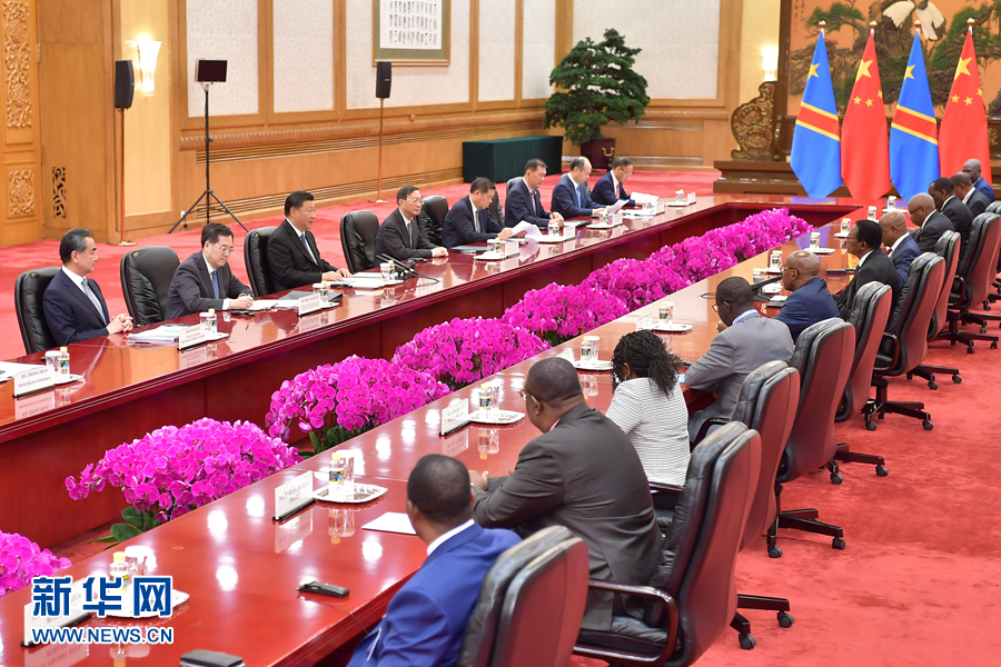 9月6日,國家主席習近平在北京人民大會堂會見剛果民主共和國總理奇巴拉。 新華社記者 李濤 攝