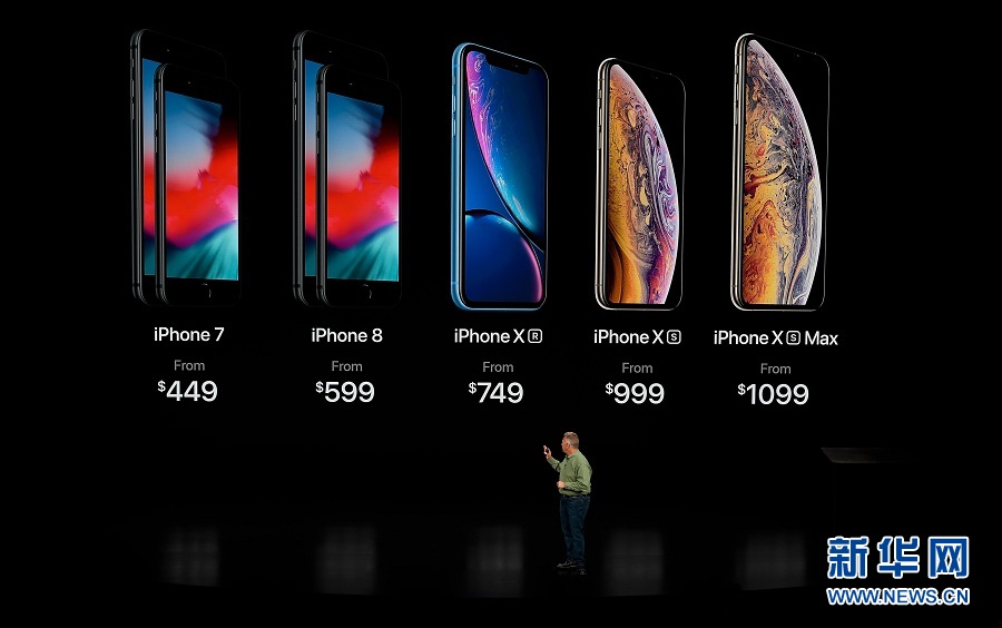 9月12日,在美國(guó)加利福尼亞州丘珀蒂諾市舉行的蘋果新品發(fā)布會(huì)上,蘋果公司全球市場(chǎng)營(yíng)銷高級(jí)副總裁菲利普·席勒介紹蘋果系列手機(jī)的售價(jià)。美國(guó)蘋果公司12日在加州丘珀蒂諾市舉行新品發(fā)布會(huì),推出3款智能手機(jī)和第四代蘋果手表等產(chǎn)品。其中,手機(jī)雙卡雙待功能和手表健康監(jiān)測(cè)應(yīng)用廣受關(guān)注。 新華社發(fā)
