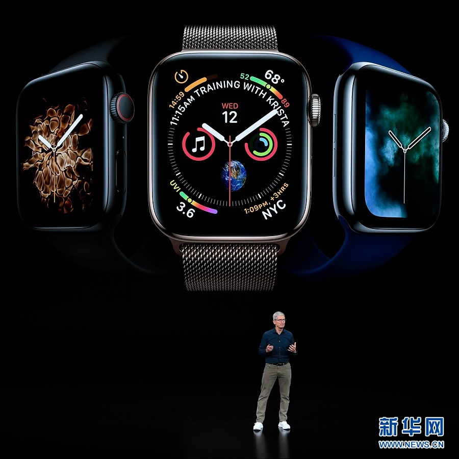 9月12日,在美國(guó)加利福尼亞州丘珀蒂諾市舉行的蘋果新品發(fā)布會(huì)上,蘋果公司首席執(zhí)行官蒂姆·庫(kù)克介紹新推出的第四代蘋果手表。美國(guó)蘋果公司12日在加州丘珀蒂諾市舉行新品發(fā)布會(huì),推出3款智能手機(jī)和第四代蘋果手表等產(chǎn)品。其中,手機(jī)雙卡雙待功能和手表健康監(jiān)測(cè)應(yīng)用廣受關(guān)注。 新華社發(fā)