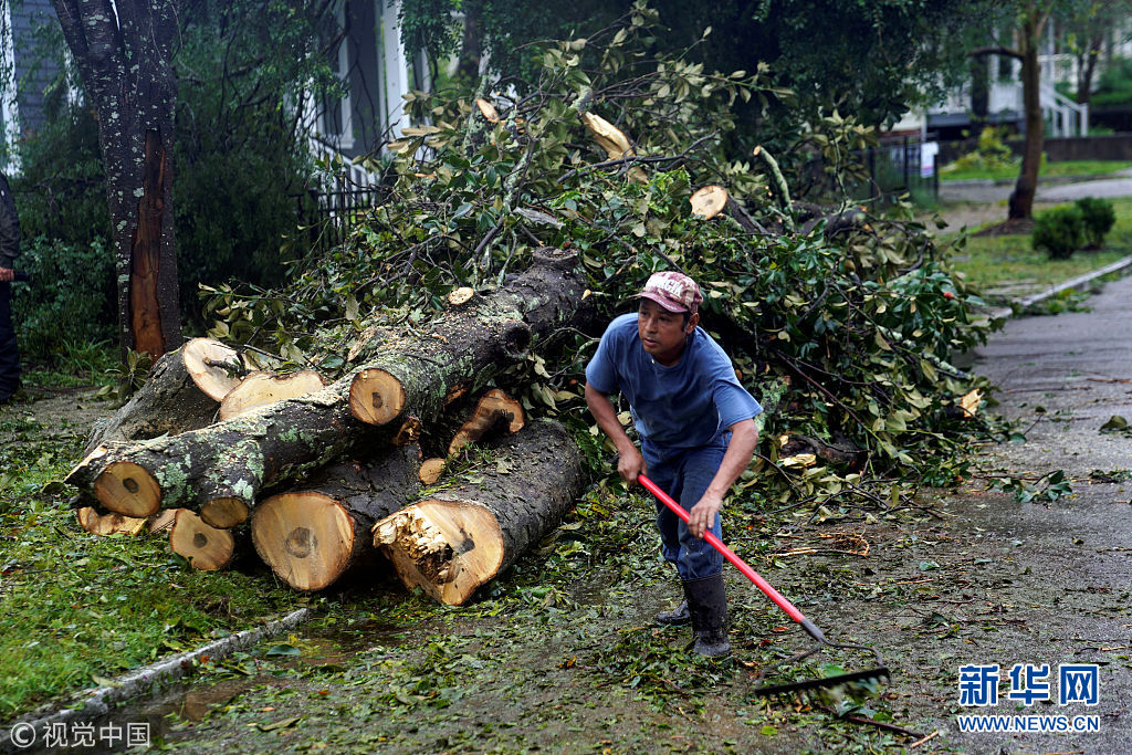 當?shù)貢r間2018年9月15日,美國北卡羅來納州,颶風“佛羅倫薩”在美國北卡羅來納州登陸,狂風將大量樹木吹倒。(圖片來源:視覺中國)
