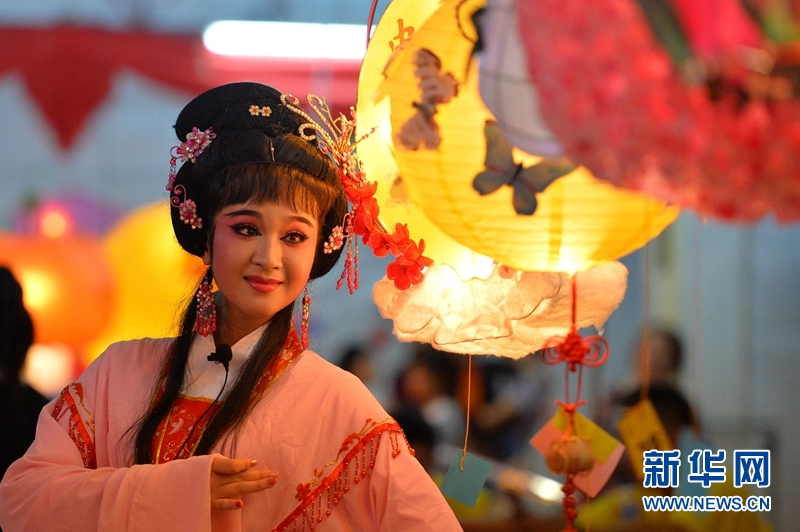 9月24日晚,文萊華人社團在斯里巴加灣市中心舉辦慶中秋燈會和傳統(tǒng)戲曲表演,吸引民眾駐足觀賞。圖為閩劇團演員在燈會上表演傳統(tǒng)戲曲。杰弗里·黃攝