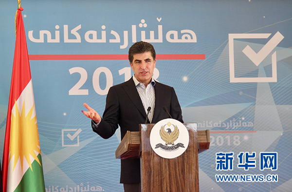 9月30日,伊拉克庫爾德自治區(qū)(庫區(qū))政府總理內(nèi)奇爾萬·巴爾扎尼在埃爾比勒市投票后出席新聞發(fā)布會。 新華社發(fā)(亞瑟爾·賈瓦德 攝)