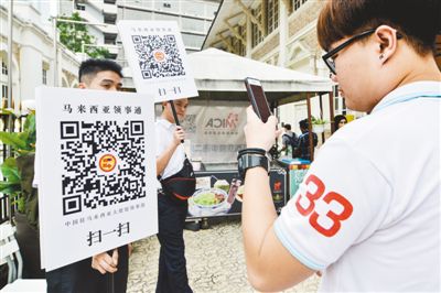 8月23日,一名游客在馬來西亞吉隆坡使用手機(jī)掃描“馬來西亞領(lǐng)事通”二維碼。新華社發(fā)