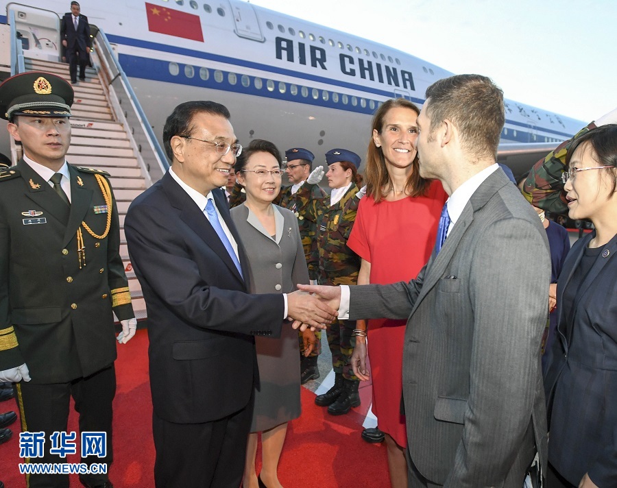 李克強(qiáng)總理夫人程虹,國(guó)務(wù)委員兼外交部長(zhǎng)王毅,全國(guó)政協(xié)副主席、國(guó)家發(fā)展和改革委員會(huì)主任何立峰等陪同人員同機(jī)抵達(dá)。比利時(shí)政府內(nèi)閣成員到機(jī)場(chǎng)迎接。禮兵沿紅地毯列隊(duì),號(hào)手吹號(hào)致敬。中國(guó)駐歐盟使團(tuán)團(tuán)長(zhǎng)張明、中國(guó)駐比利時(shí)大使曹忠明等也到機(jī)場(chǎng)迎接。