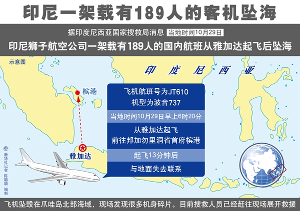 獅航這架載有189人的國內(nèi)航班當(dāng)天早上6時20分從雅加達(dá)起飛,前往邦加勿里洞省首府檳港,但在起飛13分鐘后與地面失去聯(lián)系。飛機隨后被確認(rèn)墜海。