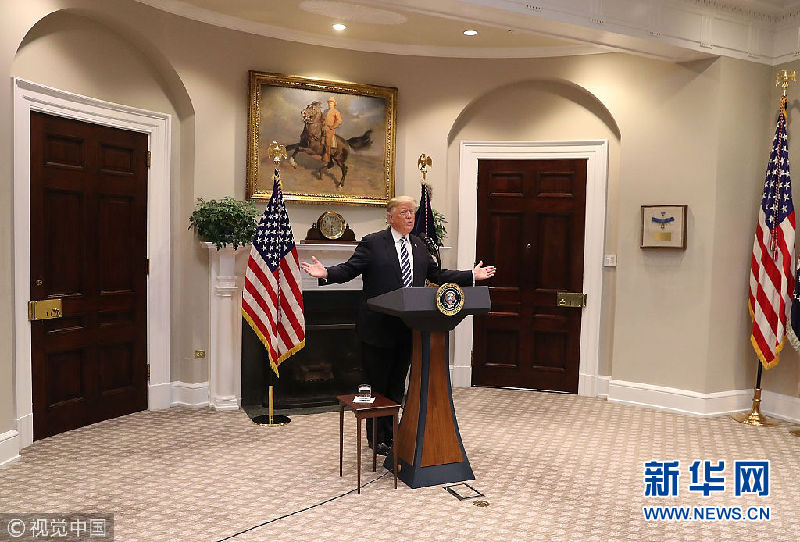 當(dāng)?shù)貢r(shí)間2018年11月1日,美國(guó)華盛頓,美國(guó)總統(tǒng)特朗普在白宮羅斯福廳就移民和邊境安全問(wèn)題發(fā)表講話。(圖片來(lái)源:視覺(jué)中國(guó))