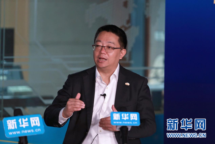 圖為綠地商貿(mào)集團(tuán)董事長、總經(jīng)理薛迎杰接受新華網(wǎng)獨(dú)家專訪。新華網(wǎng)嚴(yán)曉瑜攝
