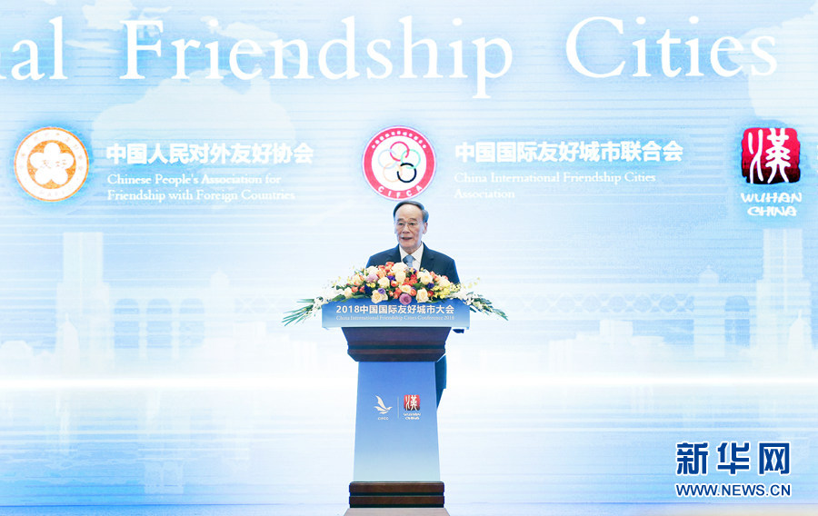 新華社武漢11月15日電(記者 廖君)2018中國國際友好城市大會15日在武漢開幕。國家副主席王岐山出席開幕式并做主旨發(fā)言。
