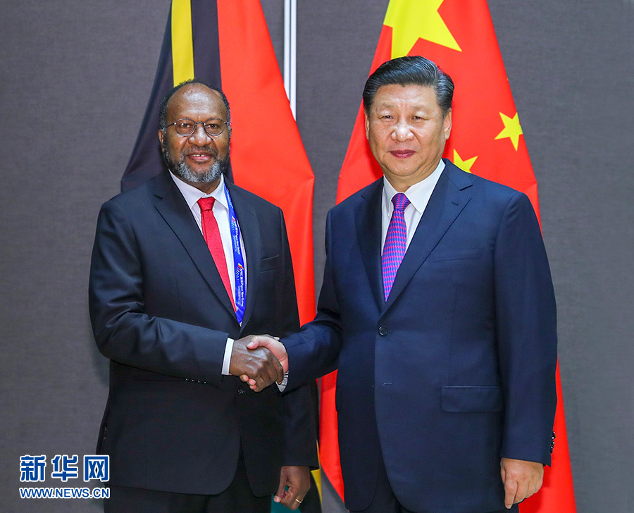 11月16日,國(guó)家主席習(xí)近平在莫爾茲比港分別會(huì)見(jiàn)建交太平洋島國(guó)領(lǐng)導(dǎo)人。這是習(xí)近平會(huì)見(jiàn)紐??偫硭?新華社記者 丁林 攝