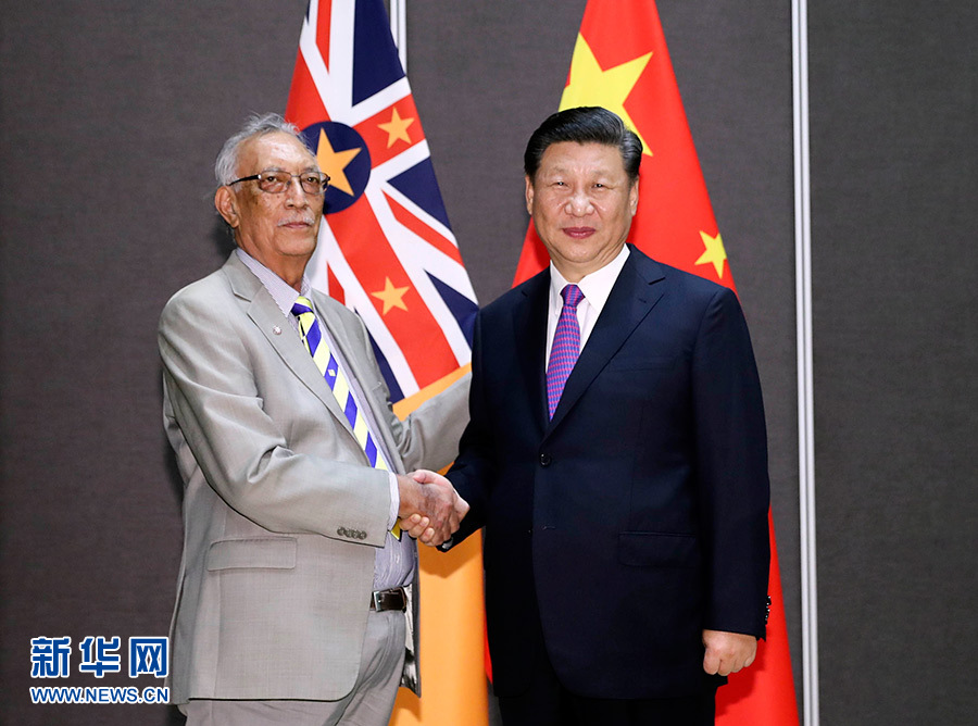 11月16日,國(guó)家主席習(xí)近平在莫爾茲比港分別會(huì)見(jiàn)建交太平洋島國(guó)領(lǐng)導(dǎo)人。這是習(xí)近平會(huì)見(jiàn)庫(kù)克群島總理普納。 新華社記者 丁林 攝
