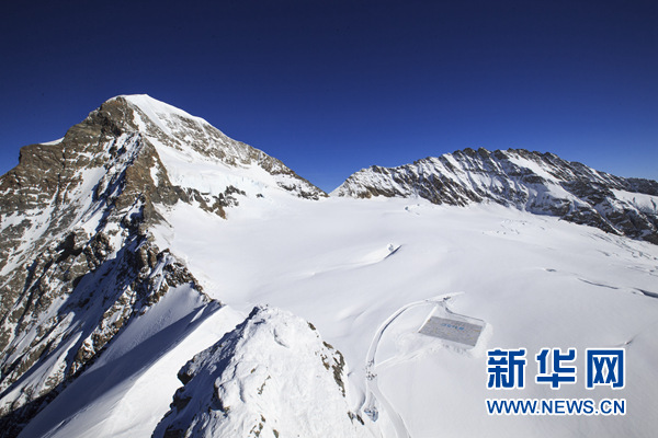 這是11月16日拍攝的瑞士少女峰下阿萊奇冰川上的世界最大明信片。 新華社記者 徐金泉 攝