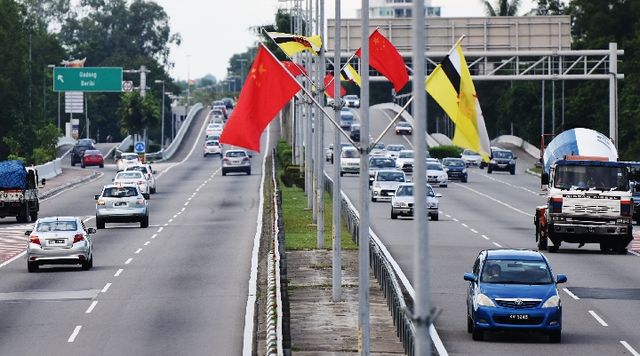 13日,當?shù)刈畲笥⑽膱蠹垺镀帕_洲公報》在頭版顯著位置刊發(fā)了習主席即將來訪的消息。為迎接中國國家元首時隔13年再次到訪,從斯里巴加灣機場到文萊蘇丹哈桑納爾居住的努洛伊曼王宮的馬路上,早早掛起了鮮艷的五星紅旗。
