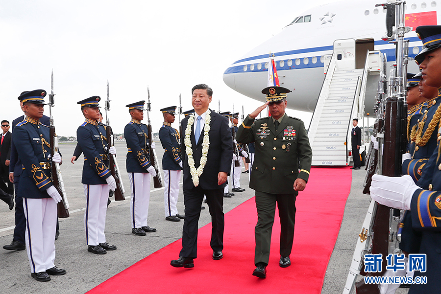 11月20日,國家主席習(xí)近平抵達(dá)馬尼拉,開始對菲律賓共和國進(jìn)行國事訪問。這是習(xí)近平在機(jī)場受到菲律賓政府高級官員熱情迎接。 新華社記者 黃敬文 攝