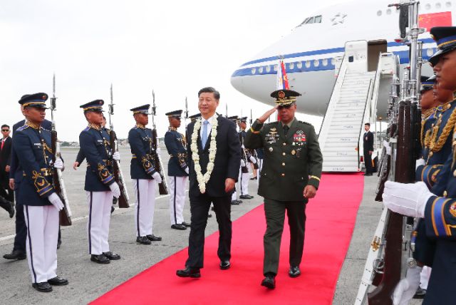 11月20日,國家主席習(xí)近平抵達馬尼拉,開始對菲律賓共和國進行國事訪問。這是習(xí)近平在機場受到菲律賓政府高級官員熱情迎接。新華社記者黃敬文攝