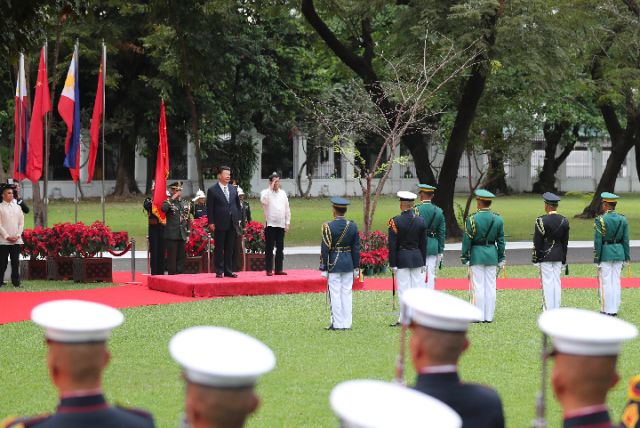 11月20日,國家主席習(xí)近平在馬尼拉同菲律賓總統(tǒng)杜特爾特舉行會談。會談開始前,習(xí)近平出席杜特爾特在總統(tǒng)府前草坪舉行的隆重歡迎儀式。新華社記者丁林?jǐn)z