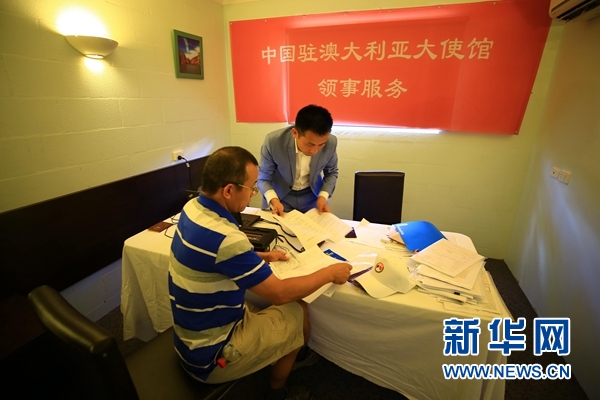 23日,中國駐澳大利亞使館的五名官員從首都堪培拉來到4000公里以外位于澳大利亞北部的港口城市達爾文,就領(lǐng)事保護和教育等方面的問題同當(dāng)?shù)亓魧W(xué)生和華僑華人進行交流并現(xiàn)場辦公。