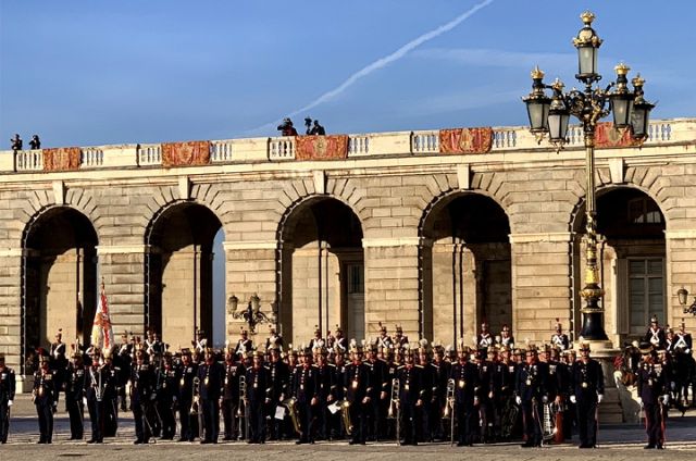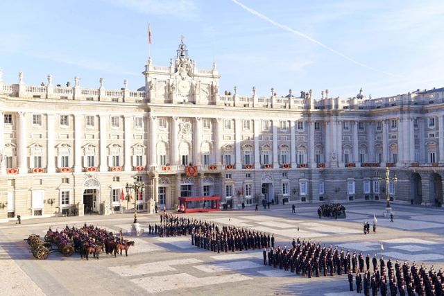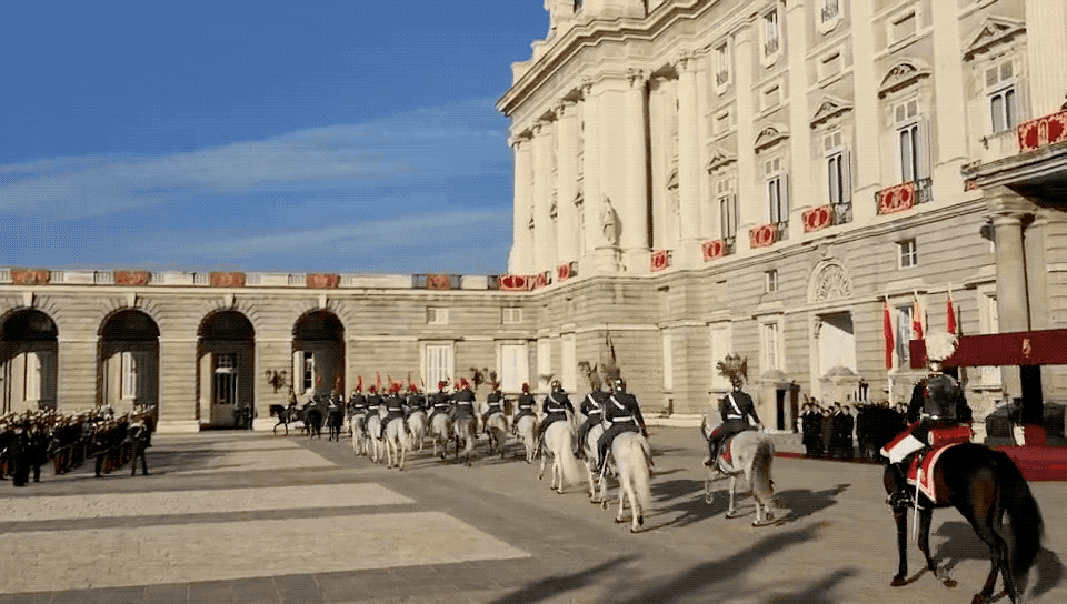 三場宴會之外,令人印象深刻的便是戰(zhàn)機(jī)護(hù)航和在馬德里王宮武器廣場舉行的盛大歡迎儀式。