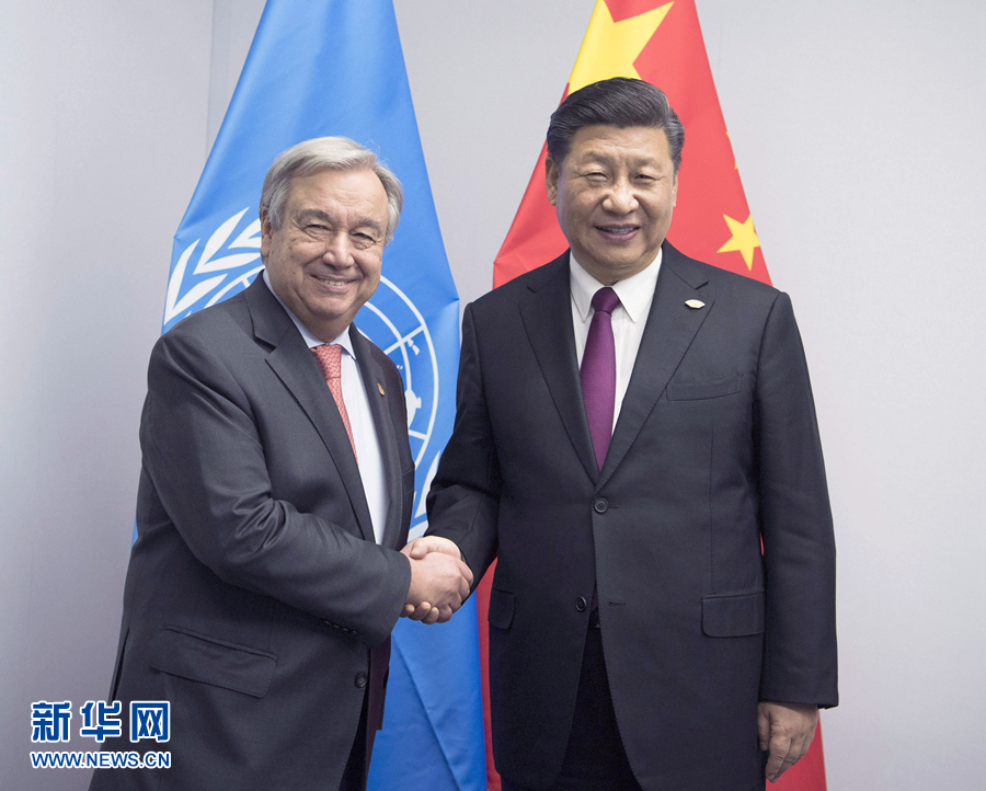 當?shù)貢r間11月30日,國家主席習近平在布宜諾斯艾利斯會見聯(lián)合國秘書長古特雷斯。 新華社記者 李學仁 攝