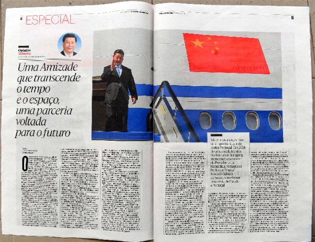 在對葡萄牙進(jìn)行國事訪問前夕,習(xí)近平主席在葡萄牙《新聞日報》發(fā)表題為《跨越時空的友誼 面向未來的伙伴》的署名文章。(新華社記者章亞東、孫奕攝)