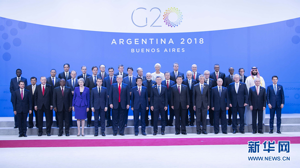 當(dāng)?shù)貢r(shí)間11月30日,二十國集團(tuán)領(lǐng)導(dǎo)人第十三次峰會在阿根廷布宜諾斯艾利斯舉行。國家主席習(xí)近平出席第一階段會議并發(fā)表題為《登高望遠(yuǎn),牢牢把握世界經(jīng)濟(jì)正確方向》的重要講話。這是習(xí)近平同其他與會領(lǐng)導(dǎo)人合影。 新華社記者 李濤 攝