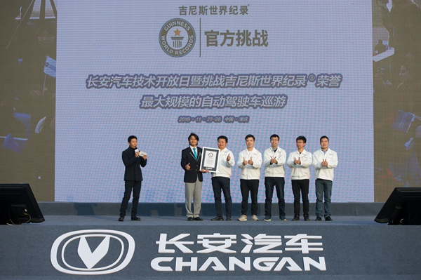 據(jù)吉尼斯世界紀(jì)錄官方報(bào)道,長(zhǎng)久以來(lái)吉尼斯世界紀(jì)錄以公平性、尊重和包容性獲得了來(lái)自世界各個(gè)國(guó)家及地區(qū)的廣泛認(rèn)可。這一次應(yīng)長(zhǎng)安汽車(chē)品牌申請(qǐng),吉尼斯世界紀(jì)錄于2018年11月28日在中國(guó)重慶墊江試驗(yàn)場(chǎng)為其進(jìn)行“最大規(guī)模的自動(dòng)駕駛車(chē)巡游”的官方挑戰(zhàn)。最終,憑借其國(guó)際領(lǐng)先而極具穩(wěn)定性的自動(dòng)駕駛技術(shù),55輛長(zhǎng)安汽車(chē)組成的自動(dòng)駕駛車(chē)隊(duì)勻速行進(jìn)3.2公里,成功創(chuàng)造世界紀(jì)錄稱(chēng)號(hào),成為全球首個(gè)成功創(chuàng)造該紀(jì)錄稱(chēng)號(hào)的汽車(chē)品牌。