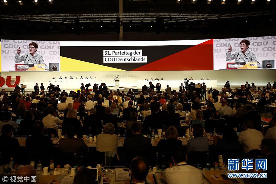 當(dāng)?shù)貢r(shí)間2018年12月7日,德國漢堡,德國基督教民主聯(lián)盟(基民盟)全國代表大會(huì)召開。根據(jù)會(huì)議選舉結(jié)果,基民盟秘書長安妮格雷特·克蘭普-卡倫鮑爾接替德國總理安格拉·默克爾,成為新一屆基民盟主席。 (圖片來源:視覺中國)