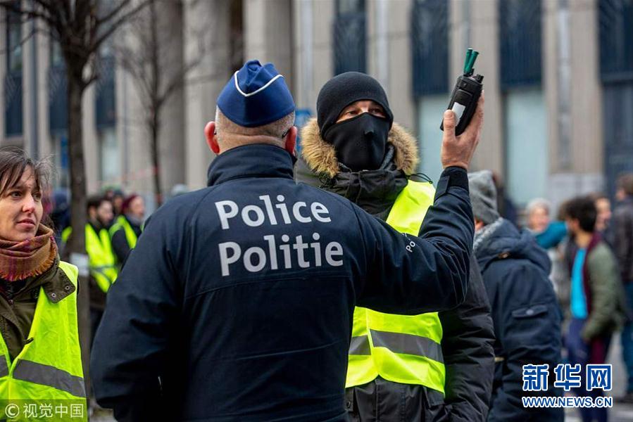 當?shù)貢r間12月15日,比利時布魯塞爾,當?shù)乇l(fā)“黃背心”抗議活動。 (圖片來源:視覺中國)