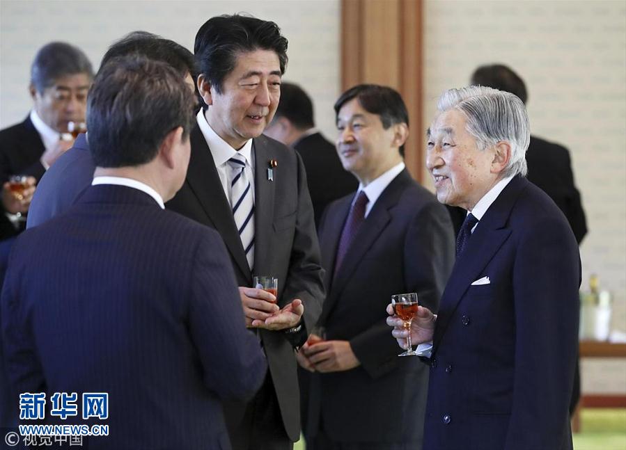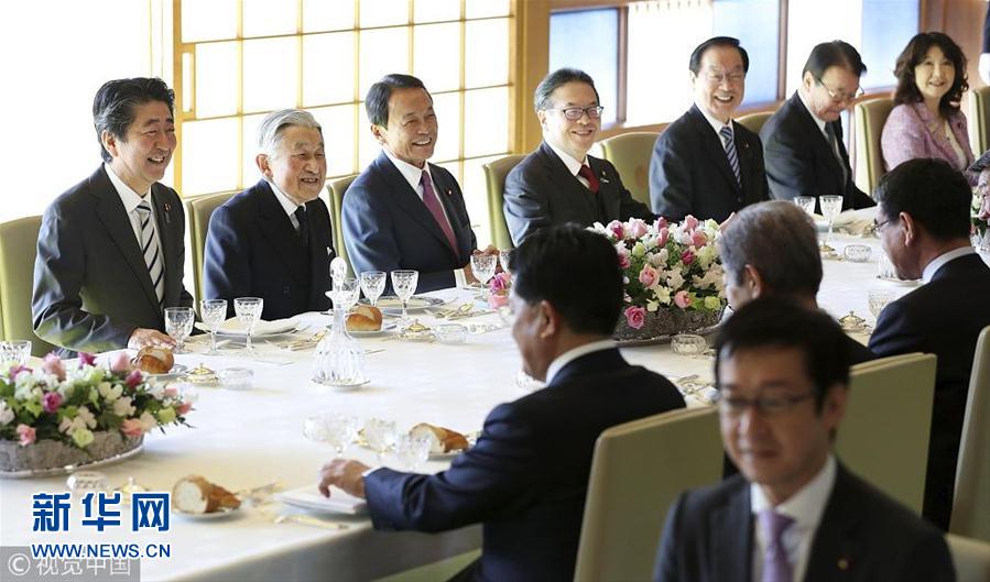 當(dāng)?shù)貢r(shí)間2018年12月17日,日本東京,日本明仁天皇在皇宮與日本首相安倍晉三領(lǐng)導(dǎo)的政府高官共進(jìn)年終午餐。(圖片來(lái)源:視覺中國(guó))