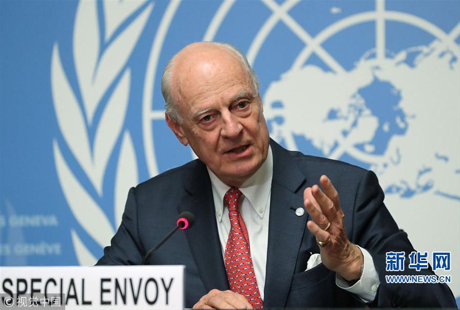 當(dāng)?shù)貢r(shí)間2018年12月18日,瑞士日內(nèi)瓦,聯(lián)合國(guó)秘書長(zhǎng)敘利亞問題特使德米斯圖拉參加討論組建敘利亞憲法委員會(huì)問題的會(huì)議并出席新聞發(fā)布會(huì)。(圖片來源:視覺中國(guó))