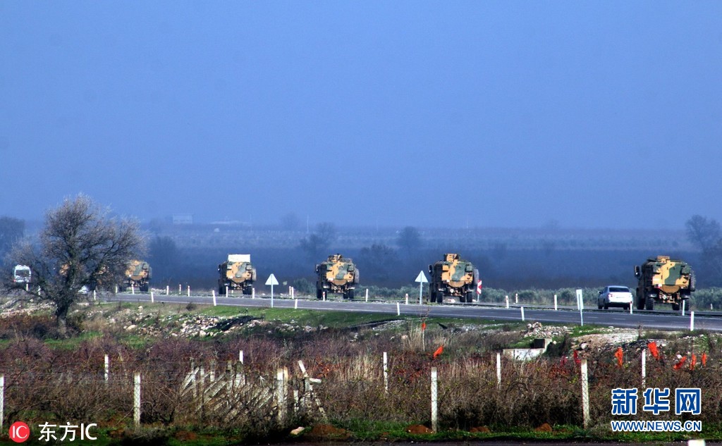 當?shù)貢r間2018年12月24日,土耳其哈塔伊,土耳其裝甲車被派往敘利亞邊境的基利斯地區(qū),增援邊境部隊。(圖片來源:東方IC)