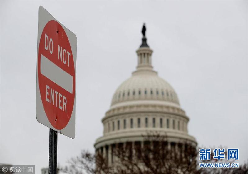 當?shù)貢r間2019年1月7日,美國華盛頓,美國國會。因美國國會兩黨仍無法就臨時撥款法案和美墨邊界墻問題達成一致,截至7日,美國部分聯(lián)邦政府機構(gòu)的停擺狀態(tài)已進入第三周。有白宮高級官員6日透露,由于談判持續(xù)僵持,美國總統(tǒng)特朗普現(xiàn)在已經(jīng)傾向于宣布國家進入緊急狀態(tài)。(圖片來源:視覺中國)