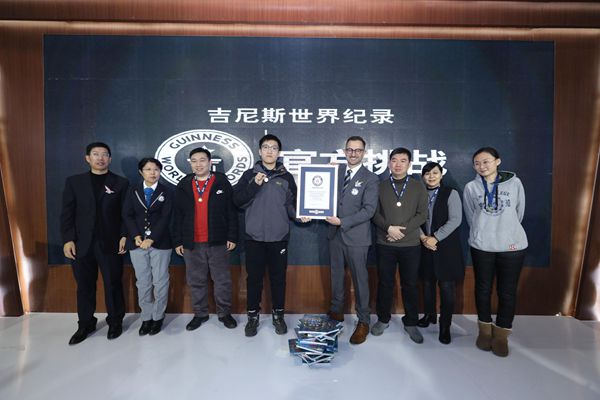 活動現(xiàn)場氣氛熱烈,百余位現(xiàn)場來賓嘗試挑戰(zhàn)“最快時間壘20本《吉尼斯世界紀錄大全》”吉尼斯世界紀錄稱號。最終,來自沈陽的吳岳挑戰(zhàn)成功,由吉尼斯世界紀錄認證官吳曉紅現(xiàn)場認證,并為其頒發(fā)證書。