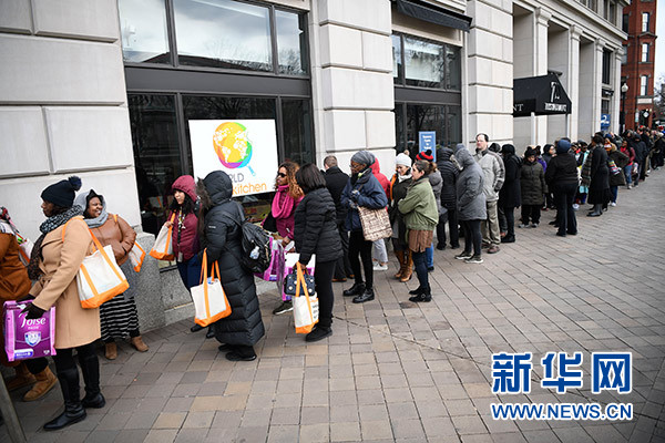 政府“停擺”依舊,冬寒并未遠(yuǎn)走,華盛頓哥倫比亞特區(qū)的道路上行人稀少、商戶門廳冷清,但在國(guó)家廣場(chǎng)附近一處街角卻見人排起了長(zhǎng)隊(duì)。