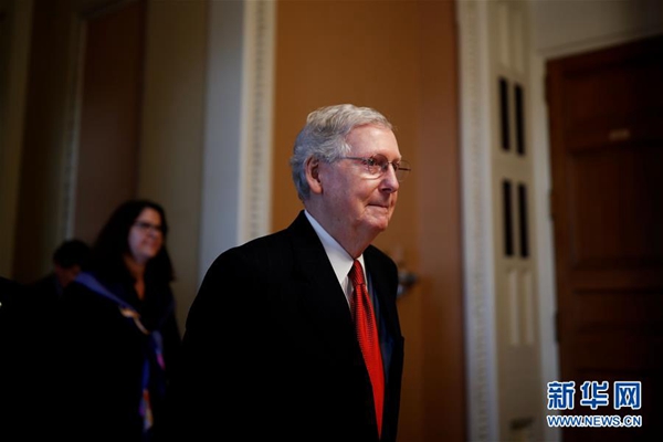 1月24日,在美國(guó)華盛頓國(guó)會(huì)山,國(guó)會(huì)參議院多數(shù)黨領(lǐng)袖麥康奈爾前往參議院。新華社發(fā)(沈霆 攝)